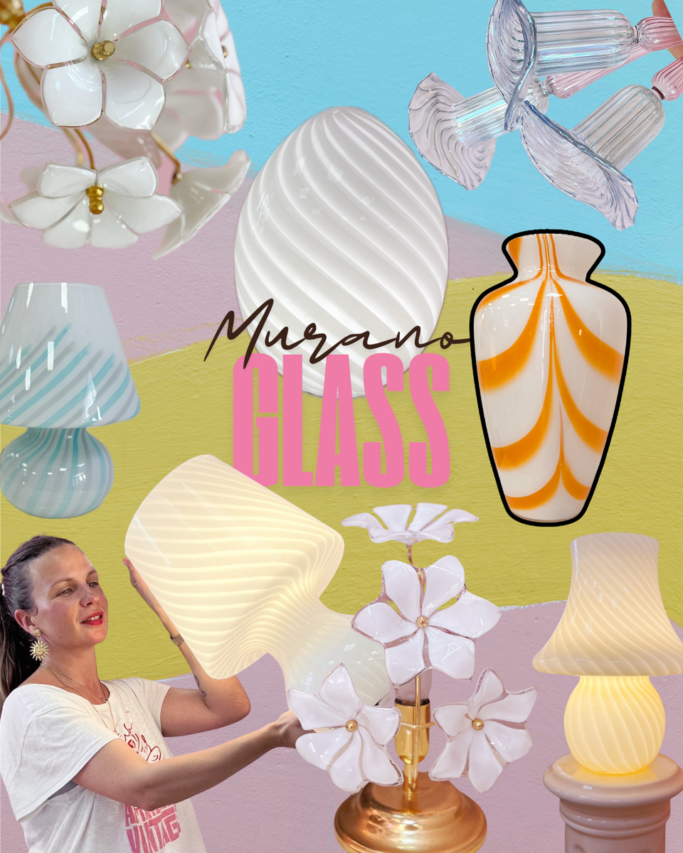 Symbole absolu du design italien, la lampe Murano vintage incarne l’élégance des décennies 70-80. Sculptées dans le verre soufflé, souvent en version lattimo opalin, torsadé ou multicolore, ces lampes se déclinent en formes champignon, tulipe ou fleur “fiore”.
