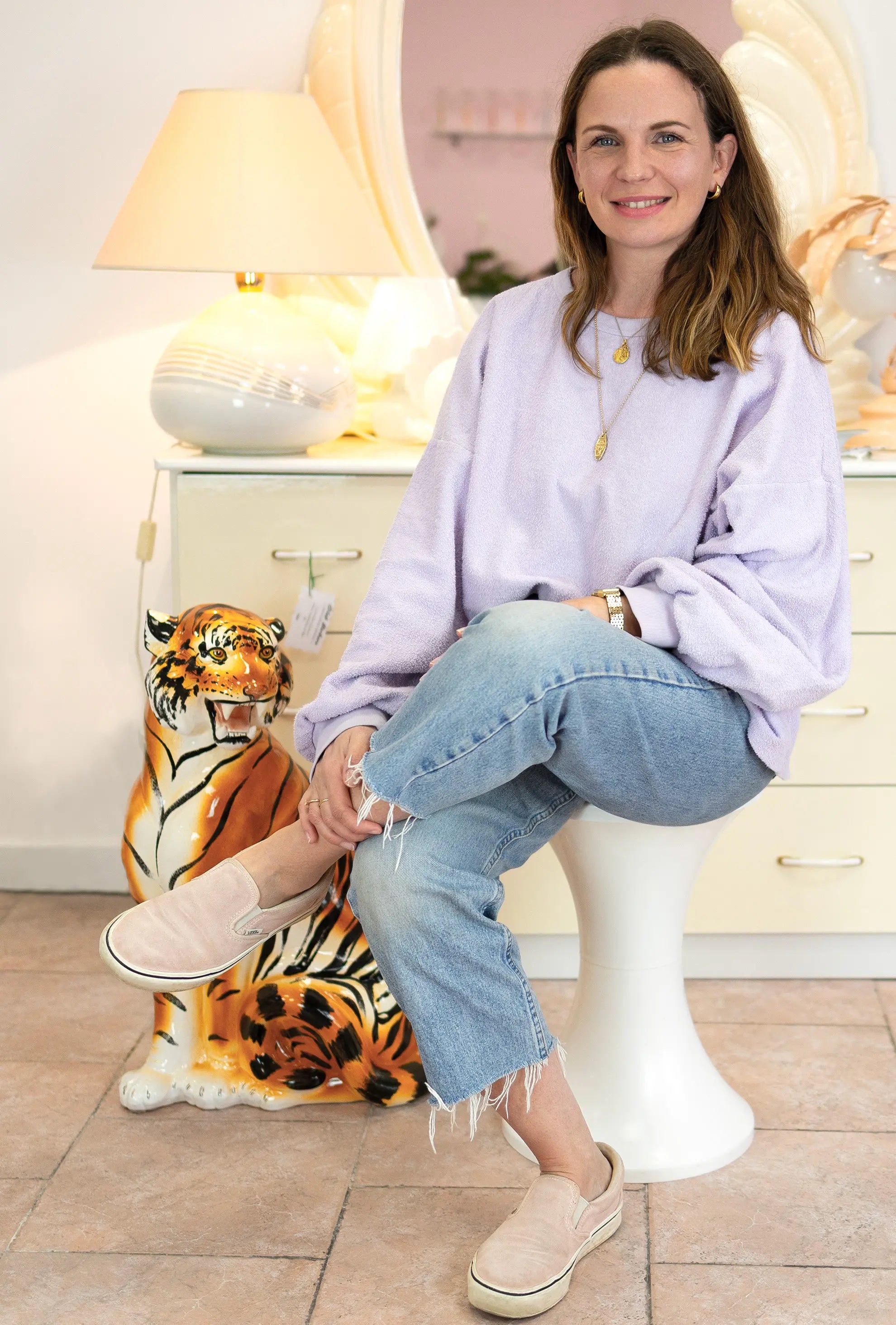 Une femme libre et magnétique, qui transforme le vintage en un art de vivre lumineux et audacieux.