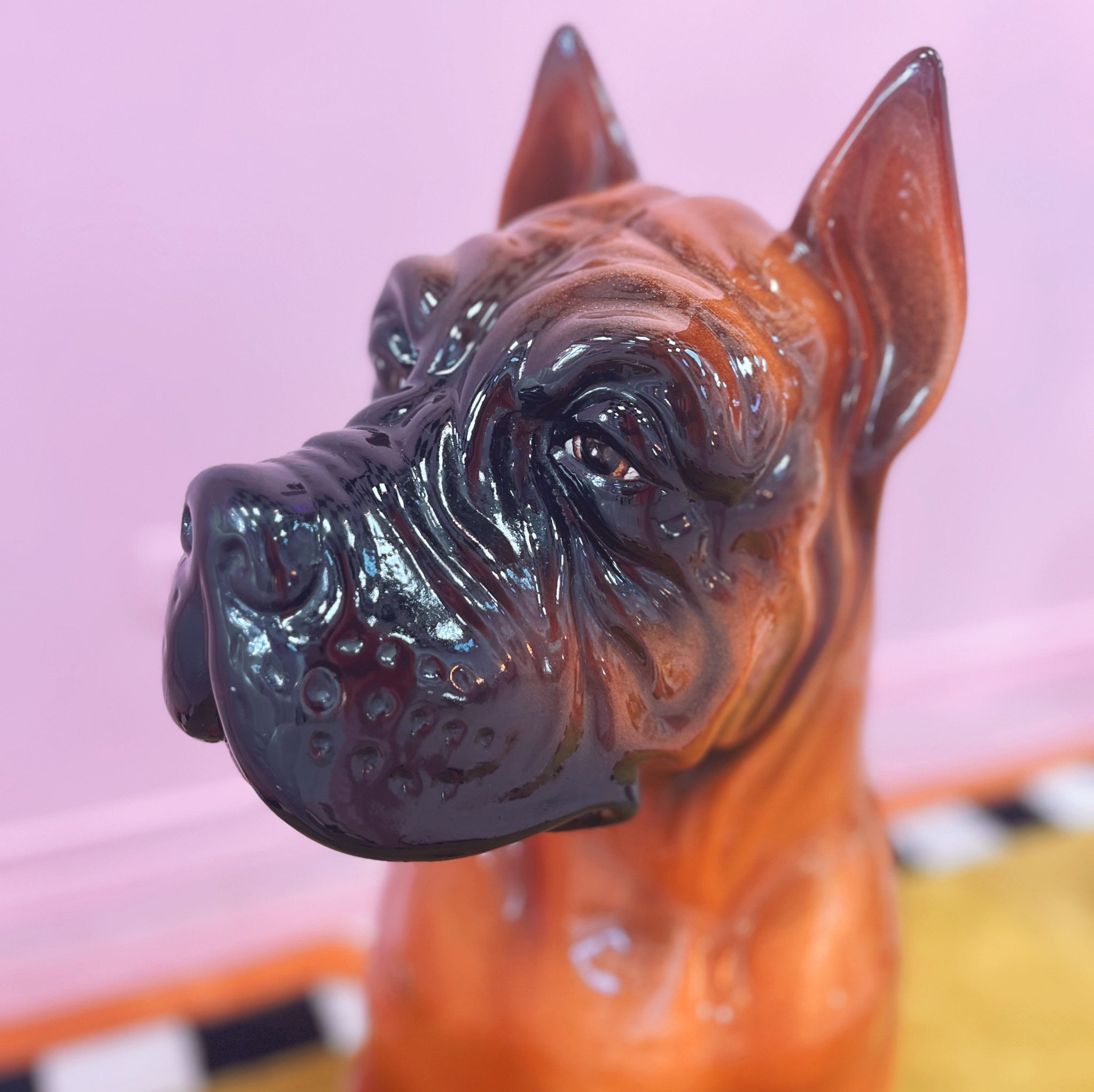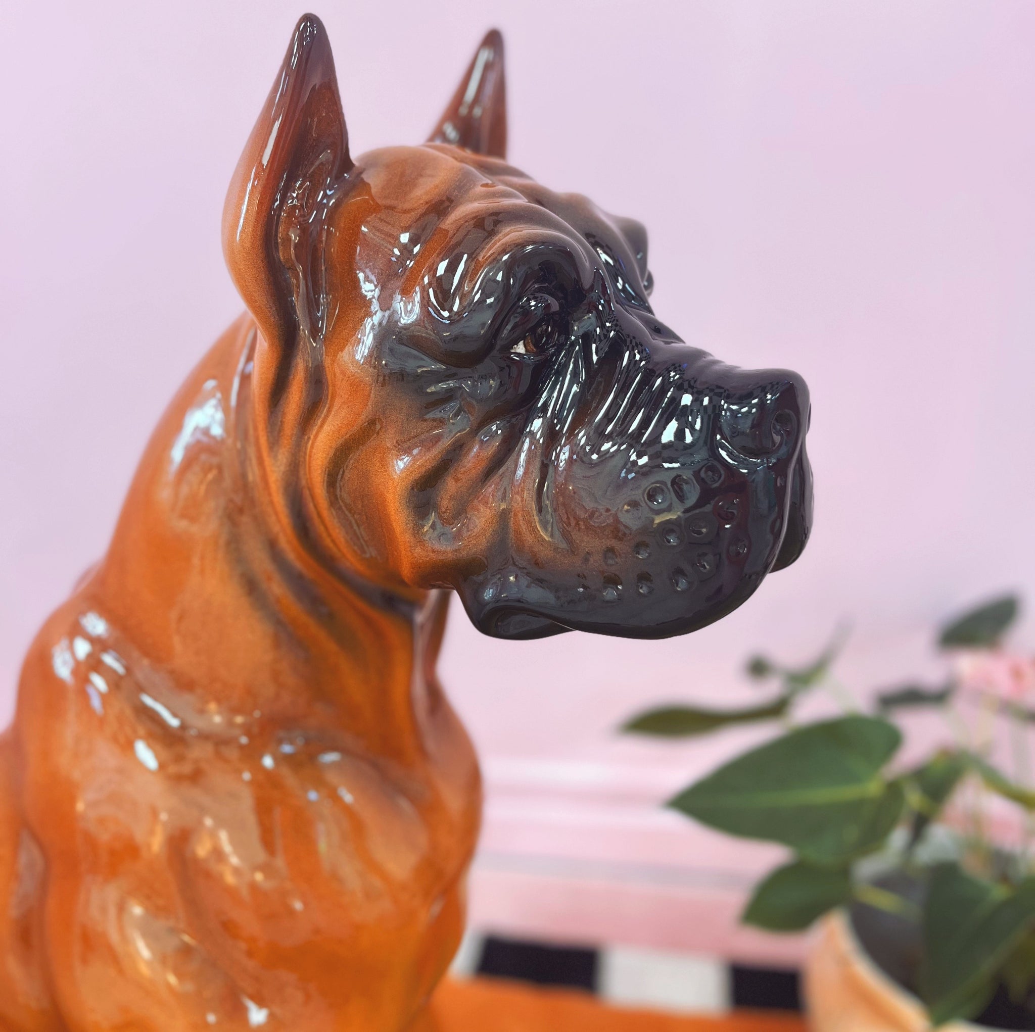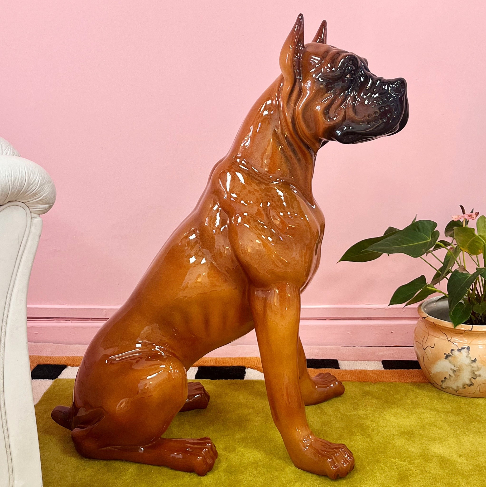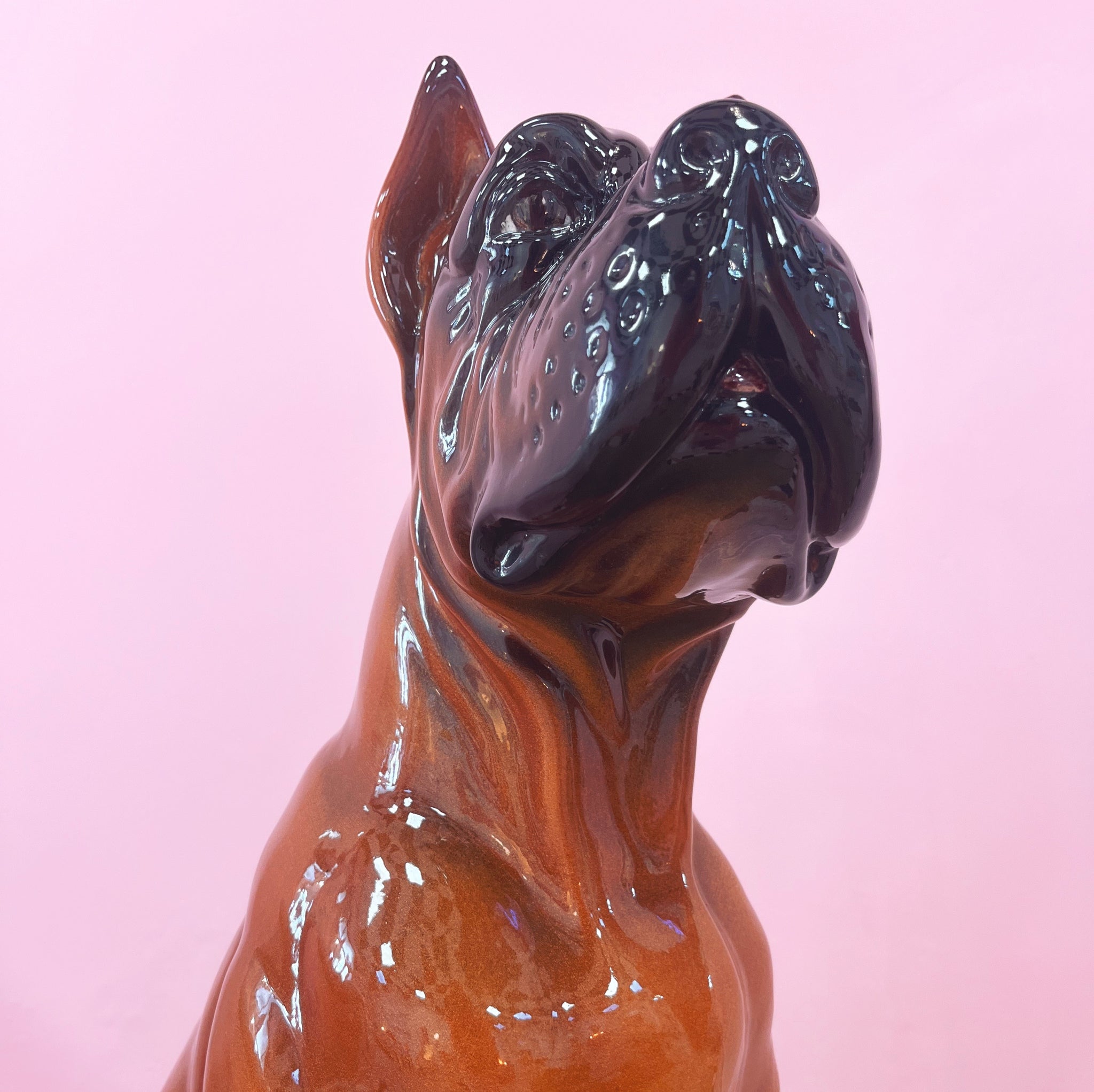 Chien Boxer en céramique vintage émaillée, pièce grand format années 70 – Club Barbara