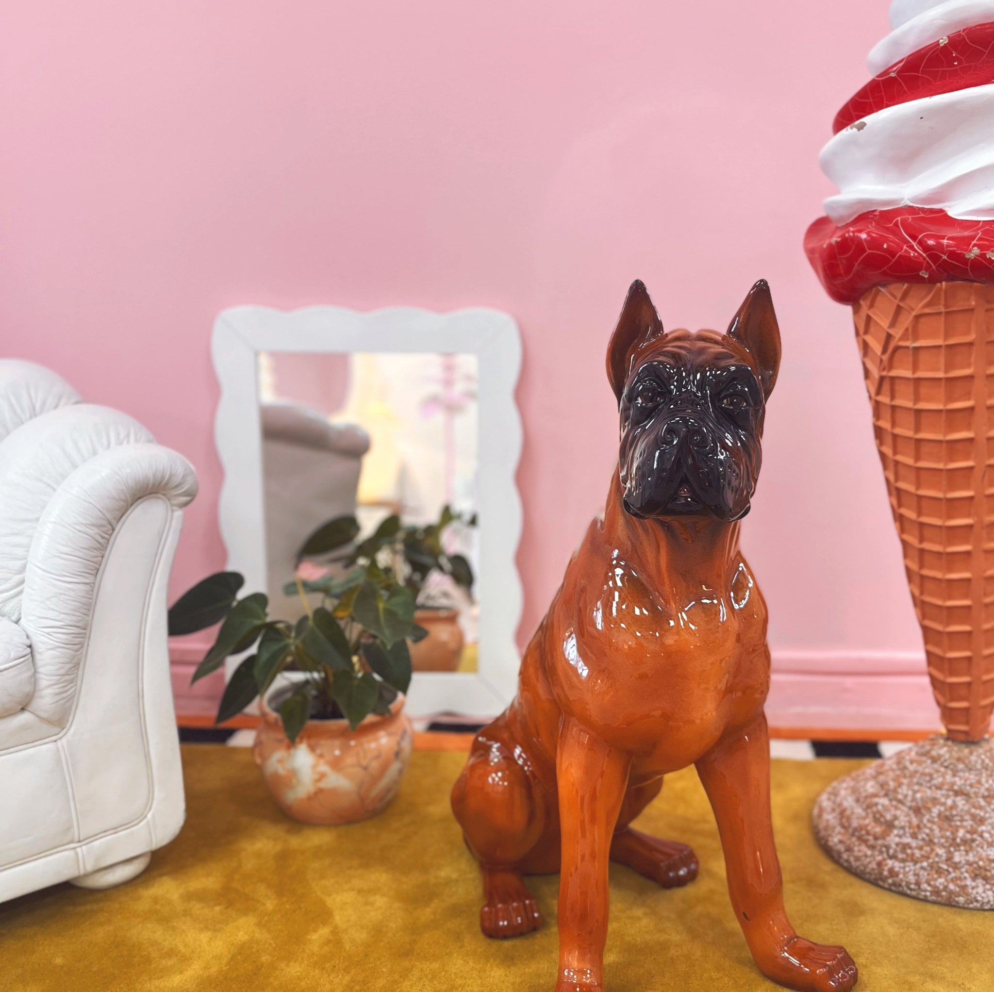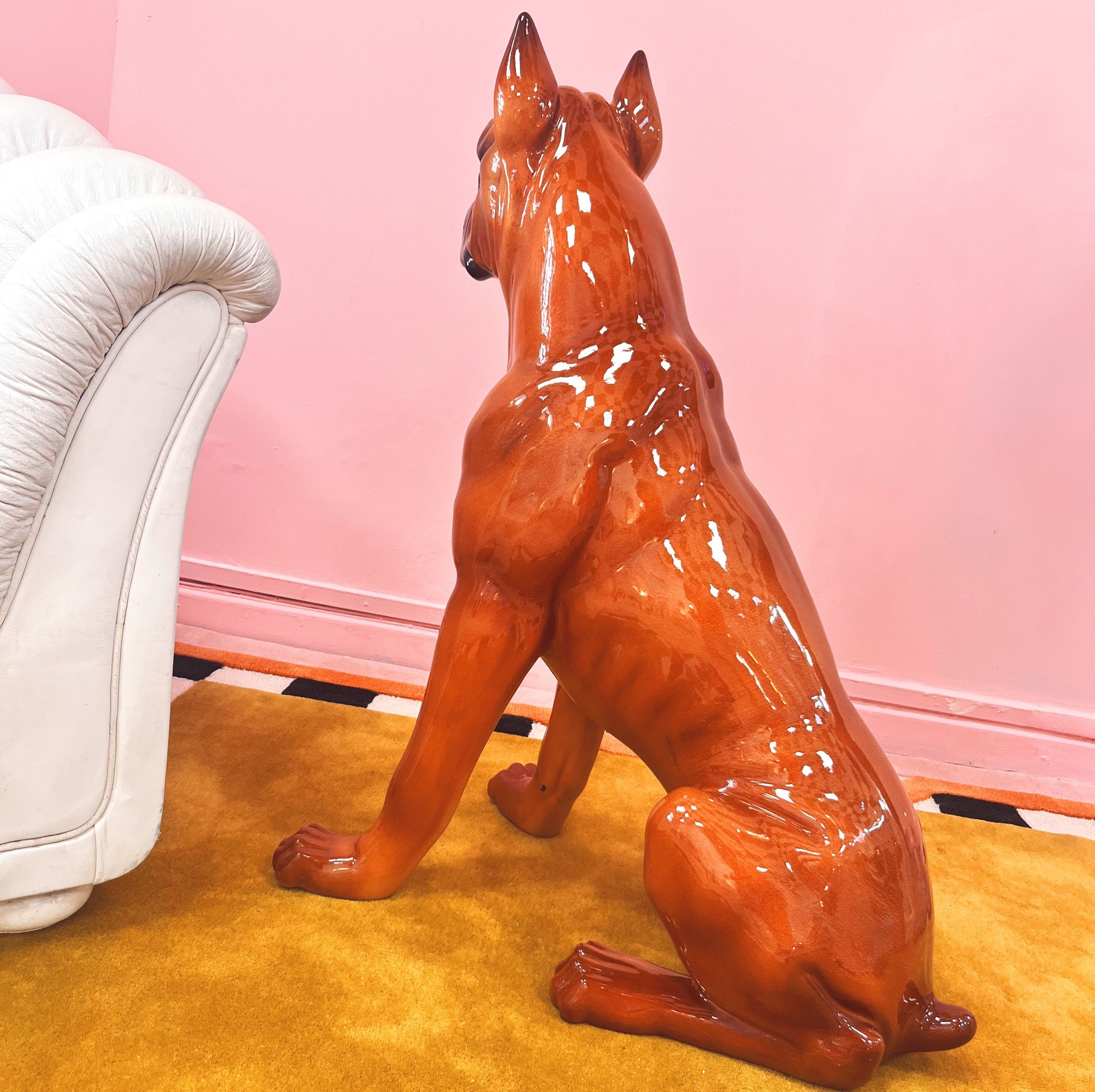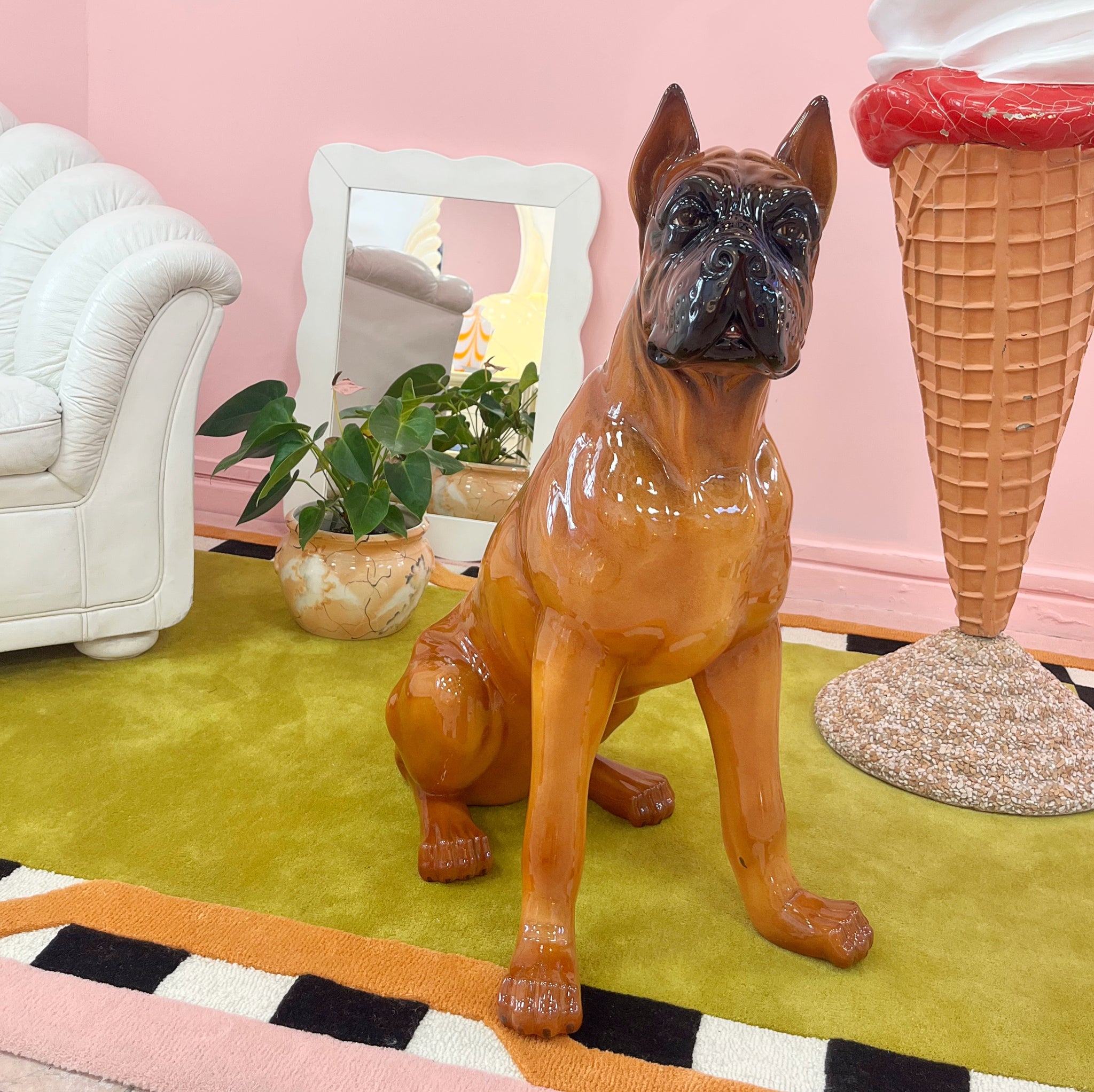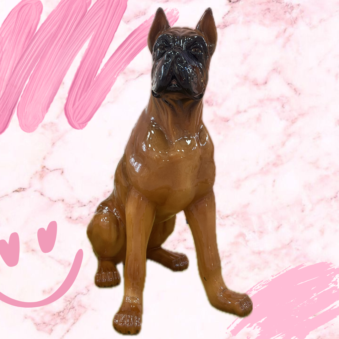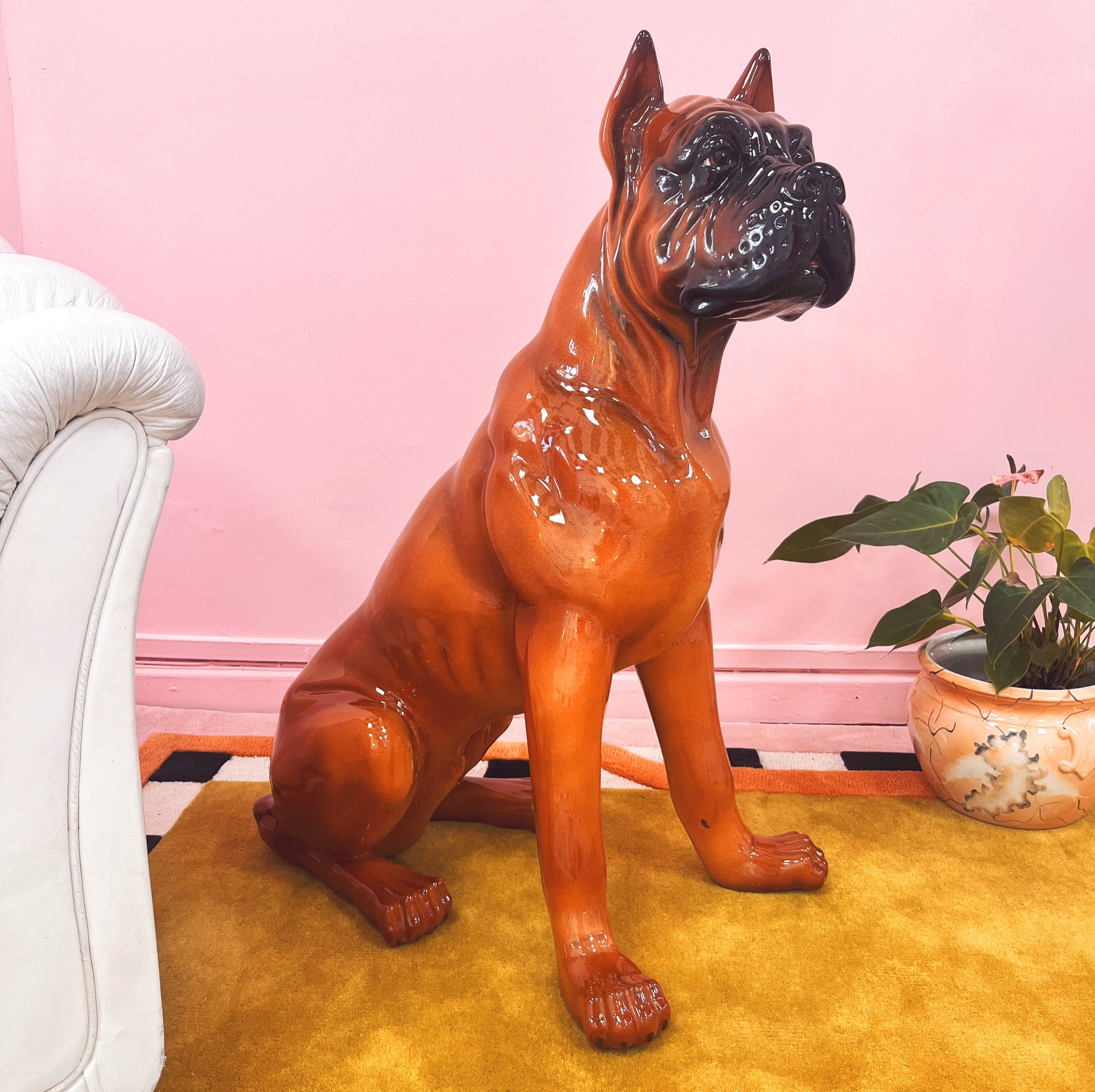 Chien Boxer en céramique vintage émaillée, pièce grand format années 70 – Club Barbara