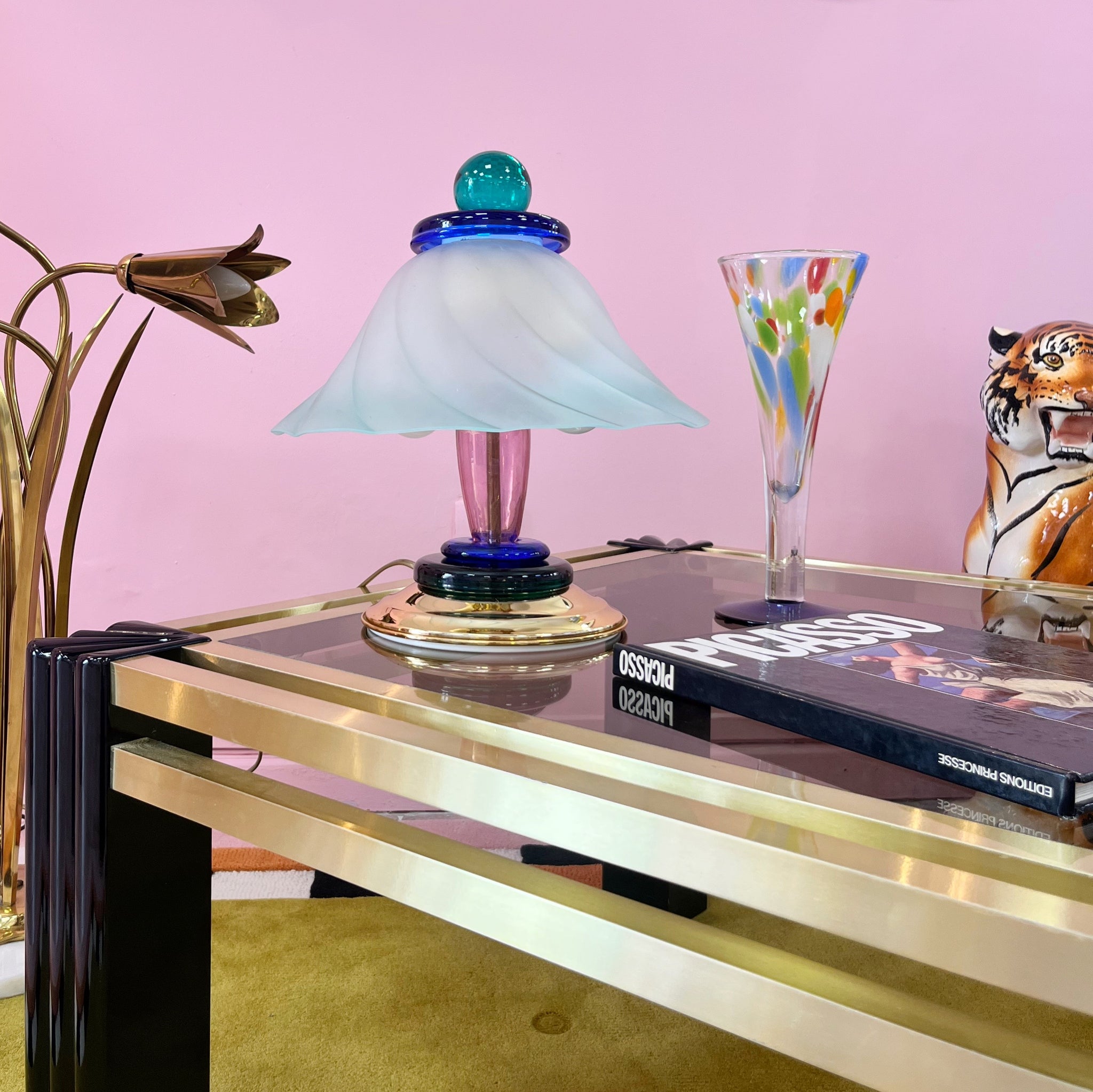 Lampe de Table Polychrome en Verre et Laiton, Italie, Années 80
