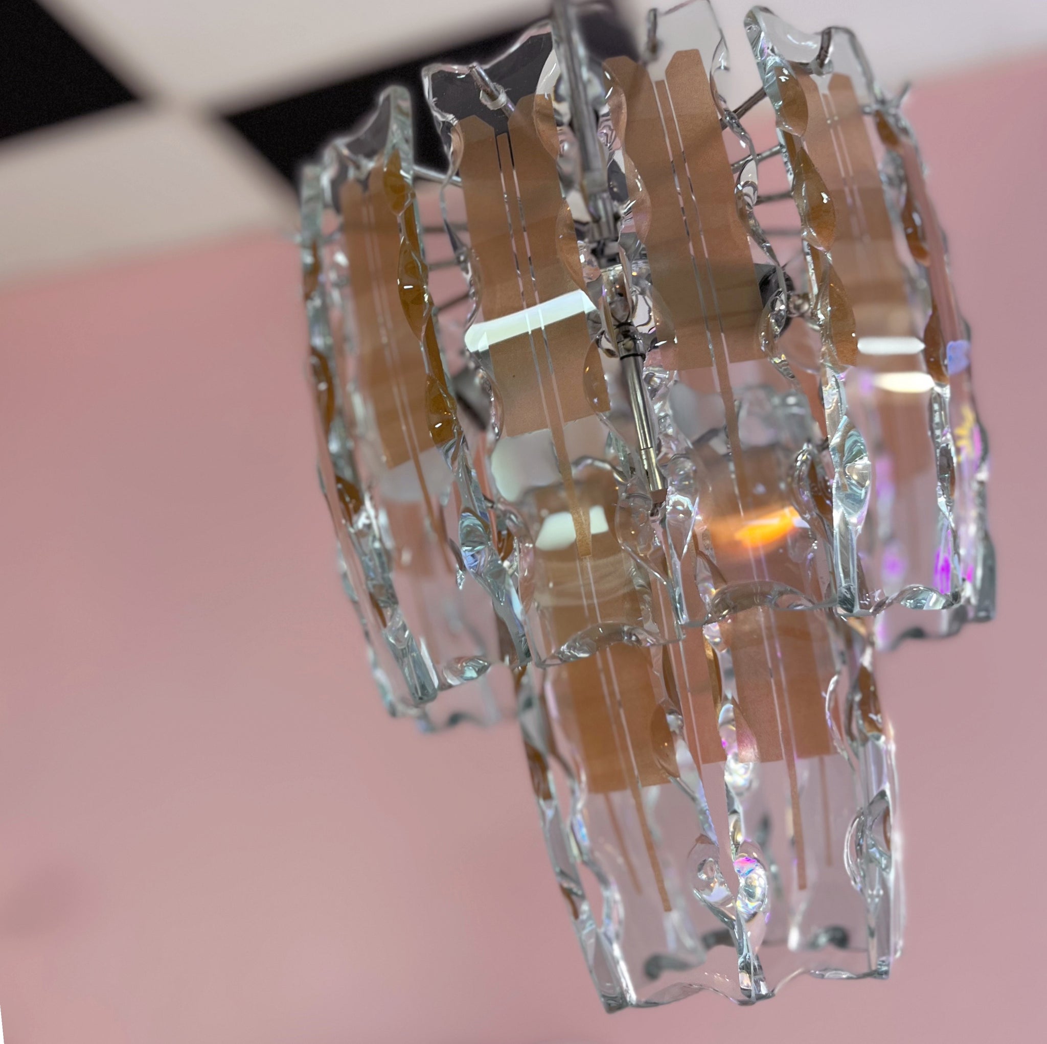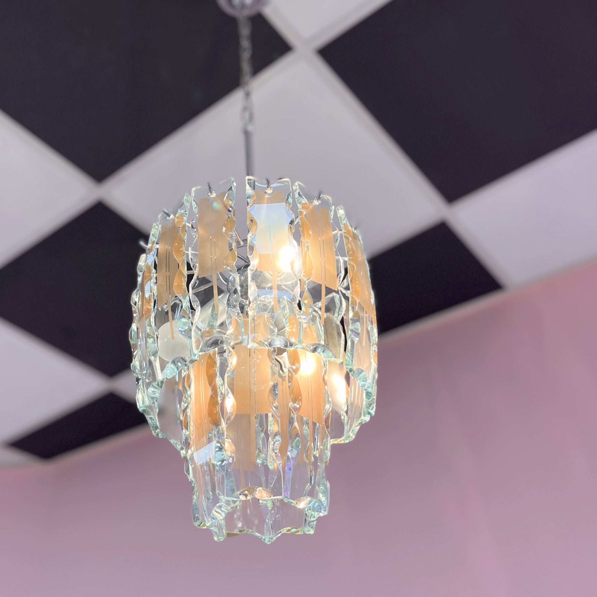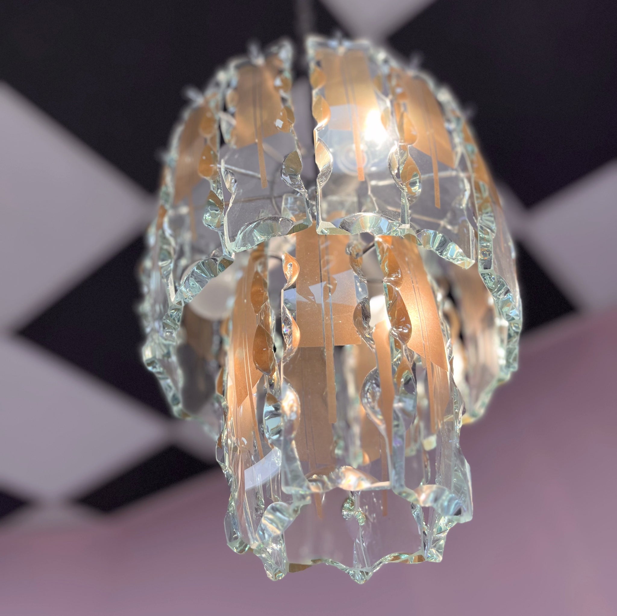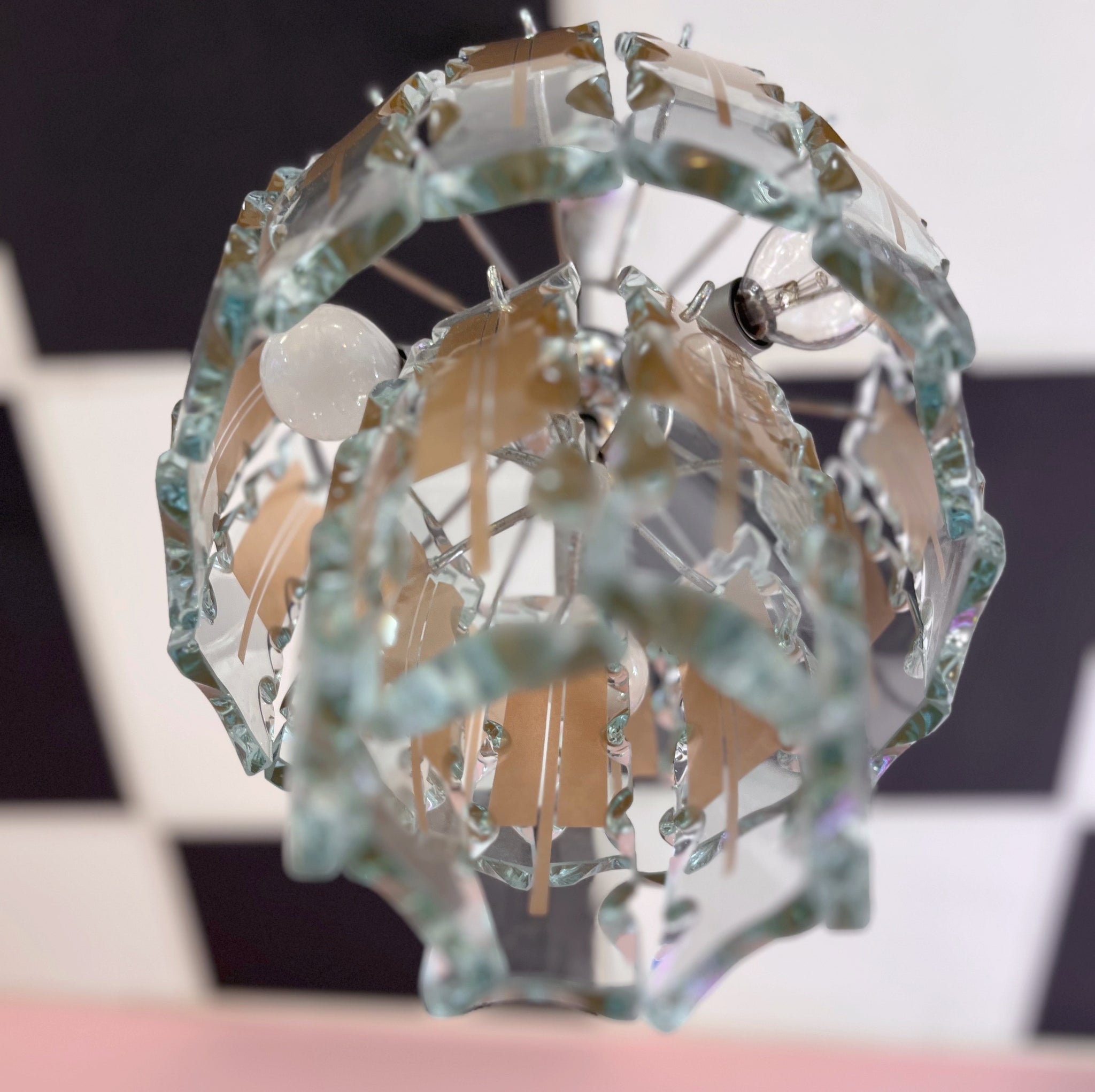 Splendide suspension italienne en verre ciselé, typique des créations Zero Quattro éditées pour Fontana Arte dans les années 70.