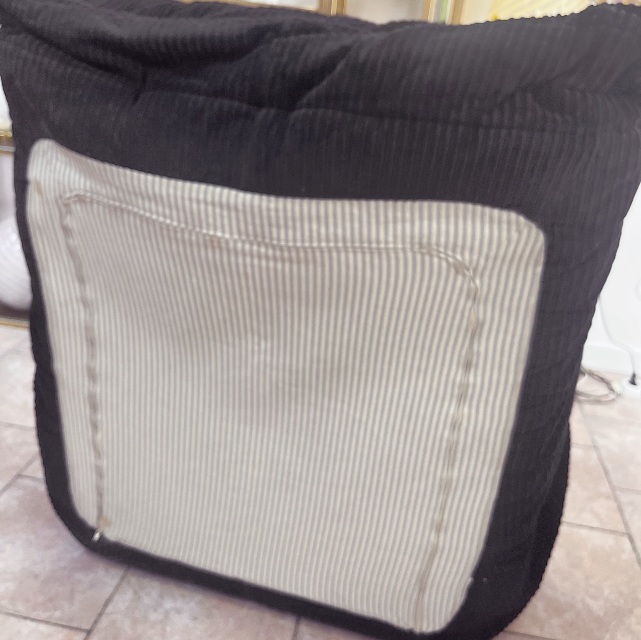 • Tissu : velours côtelé noir (retapissage années 80, très bel état).