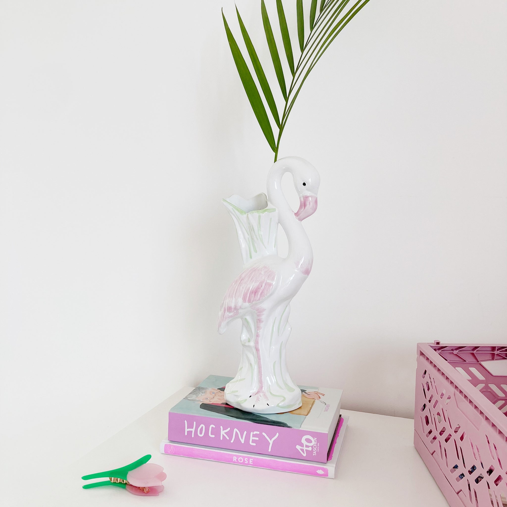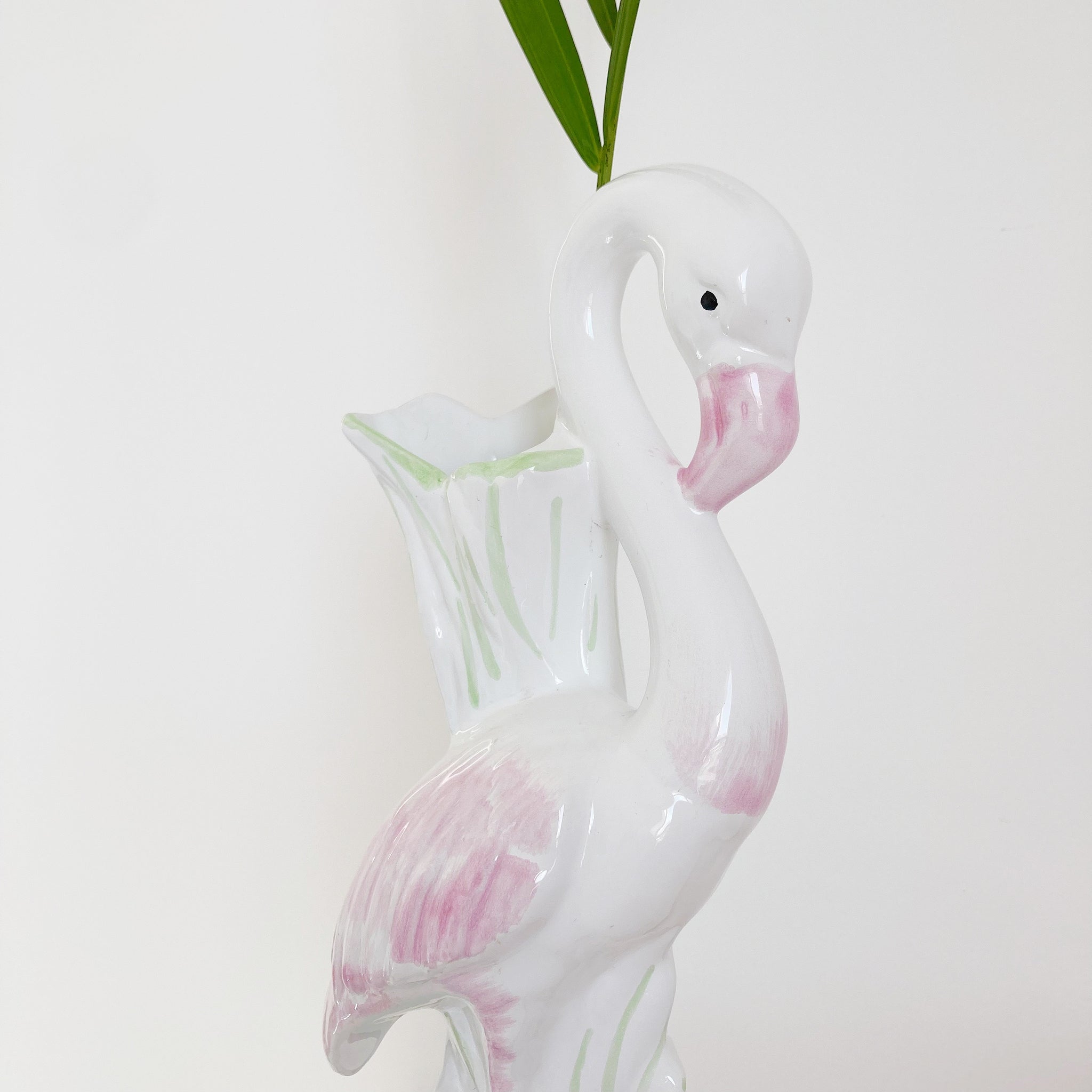 Magnifique vase vintage flamant rose en céramique.